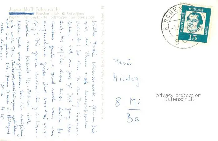 Kirchenlamitz Jagdschloss Fahrenbuehl Kirchenlamitz postalisch gelaufen 1965 Erhaltung siehe scans [WerneD78] WernPID7