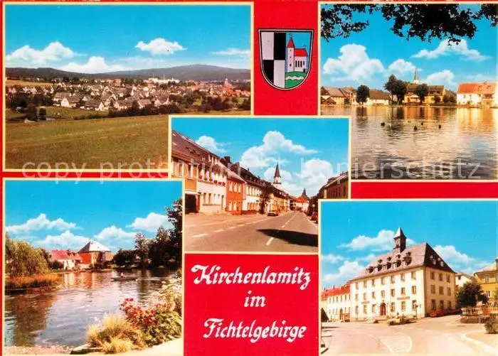 Kirchenlamitz Kategorie Alte Ansichtskarten Postkarten bx52836 Kirchenlamitz Panroama Partie am Fluss Strassenpartie Rathaus Kirchenlamitz postalisch nicht gelaufen nach 1965 Erhaltung siehe scans [FriedD77]