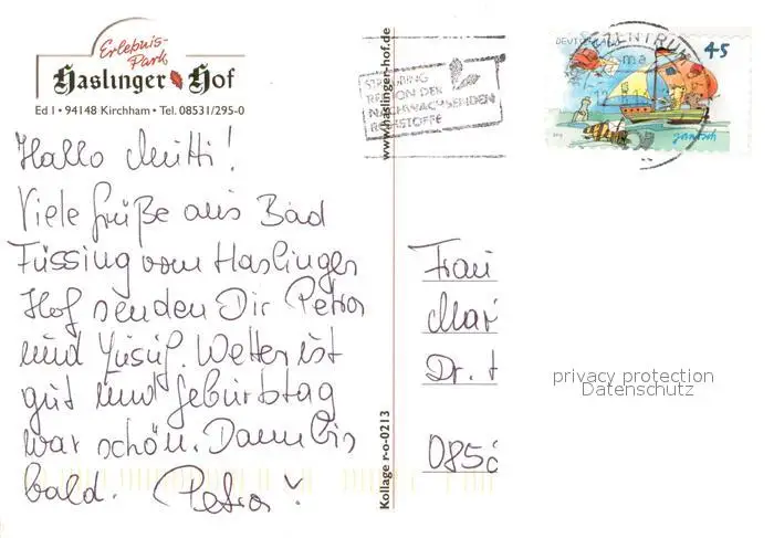 Kirchham_Niederbayern Erlebnispark Haslinger Hof Hotel Restaurant Tanzveranstaltung Kirchham Niederbayern postalisch gelaufen 2013 Erhaltung siehe scans [FriedD77] Frierer