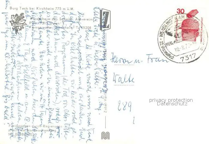 Kirchheim_Teck Burg Teck Fliegeraufnahme Kirchheim Teck postalisch gelaufen nach 1965 Erhaltung siehe scans [NatalD47] NataID47