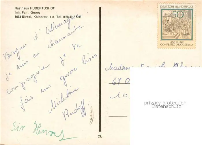 Kirkel Rasthaus Hubertushof Kirkel postalisch gelaufen 1980 Erhaltung siehe scans [FriedD77] Frierer