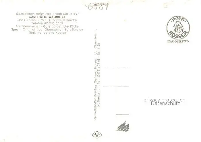Kirschweiler Gaststaette Waldblick Kirschweiler postalisch nicht gelaufen 1921-1965 Erhaltung siehe scans [LiesaD40] LiesID40