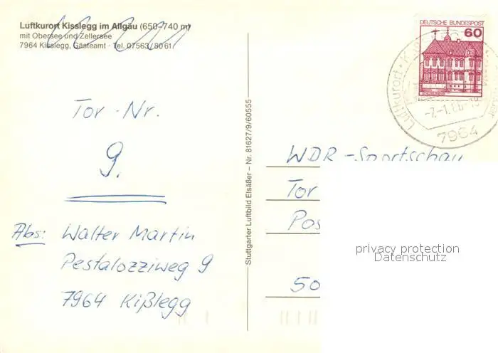 Kisslegg Kategorie Alte Ansichtskarten Postkarten bx62758 Kisslegg Fliegeraufnahme Kisslegg postalisch gelaufen 1986 Erhaltung siehe scans [KathaD81]