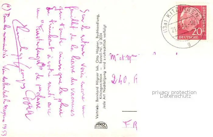 Kitzingen_Main Der Schiefe Turm Kitzingen Main postalisch gelaufen 1954 Erhaltung siehe scans [KathaD81] Kathoren