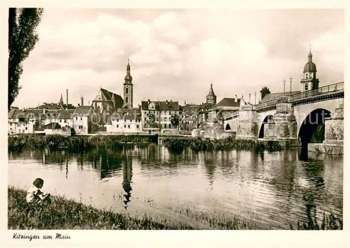 Kitzingen_Main Uferpartie am Main Blick zur Stadt Mainbruecke Kitzingen Main postalisch nicht gelaufen 1921-1965 Erhaltung siehe scans [FriedD77] Frierer