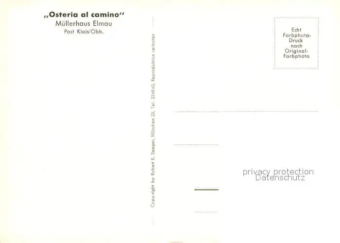 Klais Osteria al camino Muellerhaus Elmau Klais postalisch nicht gelaufen nach 1965 Erhaltung siehe scans [WerneD78] WernPID7