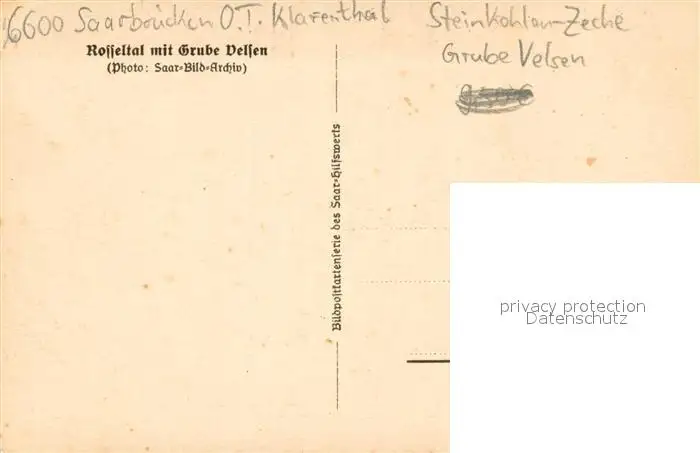 Klarenthal_Saarbruecken Rosseltal mit Grube Velsen Steinkohle-Zeche Klarenthal_Saarbruecken postalisch nicht gelaufen 1921-1965 Erhaltung siehe scans [FriedD77] Frierer