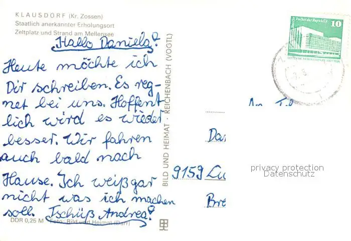 Klausdorf_Mellensee Zeltplatz Strand Klausdorf_Mellensee postalisch gelaufen 1984 Erhaltung siehe scans [FriedD77] Frierer