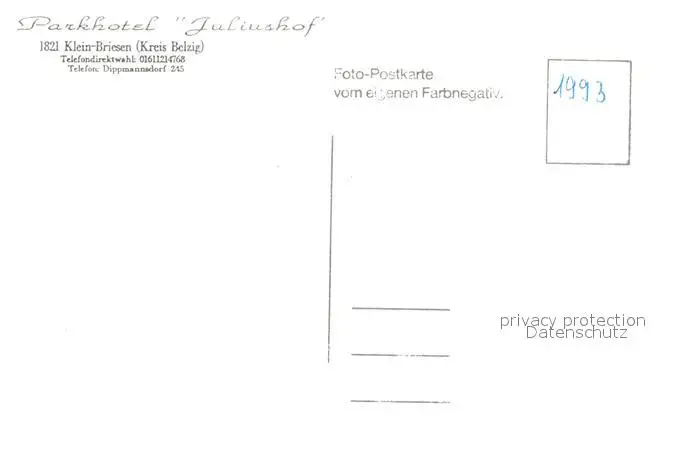 Klein_Briesen Kategorie Alte Ansichtskarten Postkarten kq87248 Klein_Briesen Parkhotel Juliushof postalisch nicht gelaufen 1993 Erhaltung siehe scans [FriedD77]