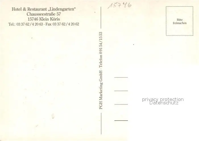 Klein_Koeris Hotel Restaurant Lindengarten am Klein Koeriser See Gastraeume Zimmer Klein_Koeris postalisch nicht gelaufen nach 1965 Erhaltung siehe scans [WerneD78] WernPID7