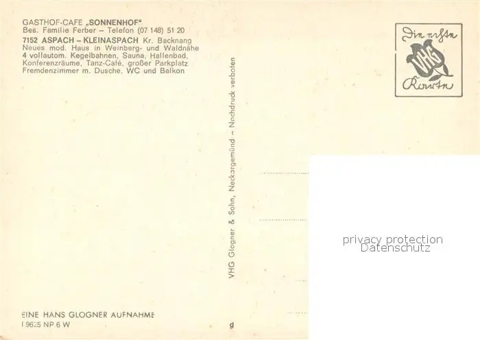 Kleinaspach Gasthof Café Sonnenhof Kegelbahn Kleinaspach postalisch nicht gelaufen nach 1965 Erhaltung siehe scans [FriedD77] Frierer