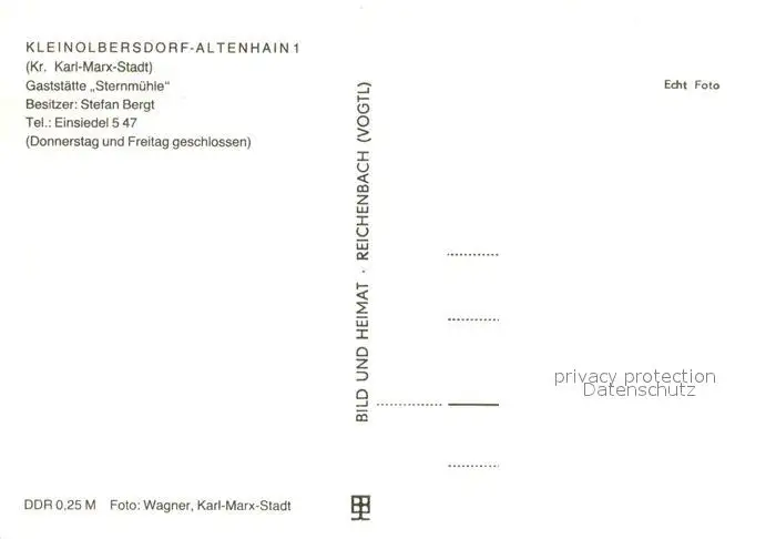 Kleinolbersdorf-Altenhain Gaststaette Sternmuehle Kleinolbersdorf-Altenhain postalisch nicht gelaufen 1985 Erhaltung siehe scans [FriedD77] Frierer