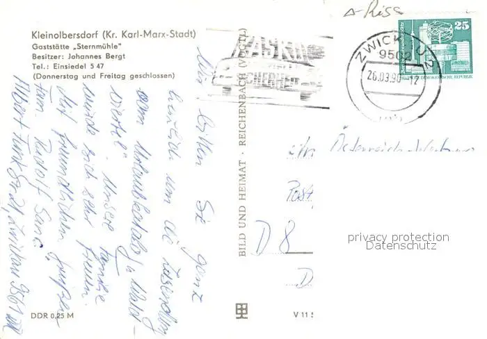 Kleinolbersdorf-Altenhain Gaststaette Sternmuehle Pferde Fachwerkhaus Kleinolbersdorf-Altenhain postalisch gelaufen 1990 Erhaltung siehe scans [WerneD78] WernPID7