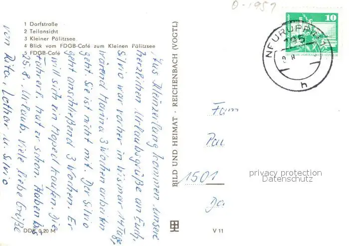 Kleinzerlang Dorfstrasse Blick vom FDGB Cafe zum Paelitzsee Kleinzerlang postalisch gelaufen 1979 Erhaltung siehe scans [FriedD77] Frierer