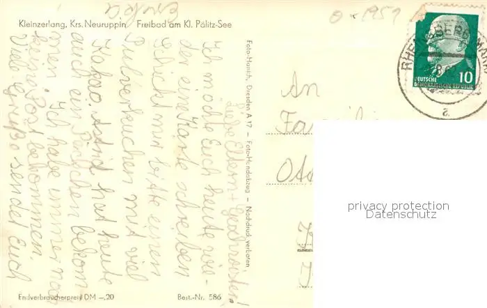 Kleinzerlang Freibad Badestrand am Kleinen Paelitzsee Kleinzerlang postalisch gelaufen 1962 Erhaltung siehe scans [FriedD77] Frierer