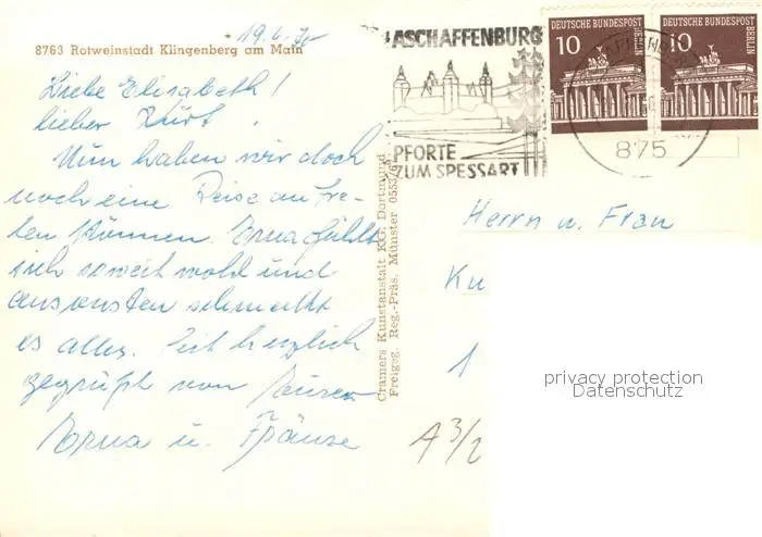 Klingenberg_Main Fliegeraufnahme Klingenberg Main postalisch gelaufen nach 1965 Erhaltung siehe scans [PaolaD17] PaolPID1