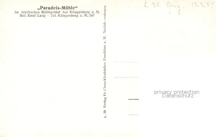 Klingenberg Main Kategorie Alte Ansichtskarten Postkarten bx54337 Klingenberg_Main Paradeis Muehle Klingenberg Main postalisch nicht gelaufen Erhaltung siehe scans [NatalD47]