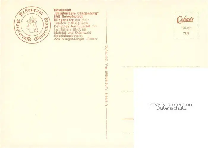 Klingenberg_Main Restaurant Burgterrasse Clingenburg Ausflugsziel Weinberge Klingenberg Main postalisch nicht gelaufen 1971 Erhaltung siehe scans [FriedD77] Frierer