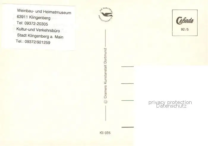 Klingenberg_Main Weinbau und Heimatmuseum Klingenberg Main postalisch nicht gelaufen 1992 Erhaltung siehe scans [FriedD77] Frierer