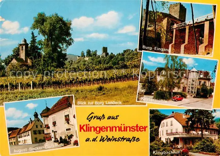 AK / Ansichtskarte Klingenmuenster Burg Landeck August Becker Denkmal Burg Eingang Keysermuehle Klingbachhof Klingenmuenster