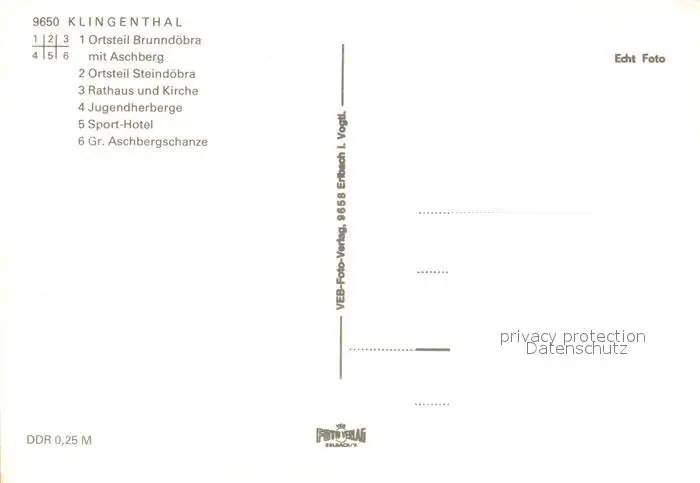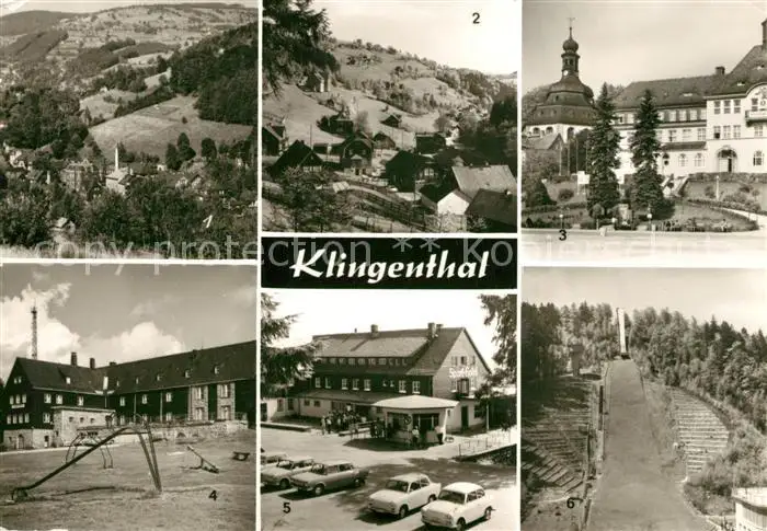 Klingenthal_Vogtland Brunndoebra mit Aschberg Steindoebra Rathaus und Kirche Jugendherberge Sport Hotel Gr Aschbergschanze Klingenthal_Vogtland postalisch nicht gelaufen nach 1965 Erhaltung siehe scans [WerneD78] WernPID7
