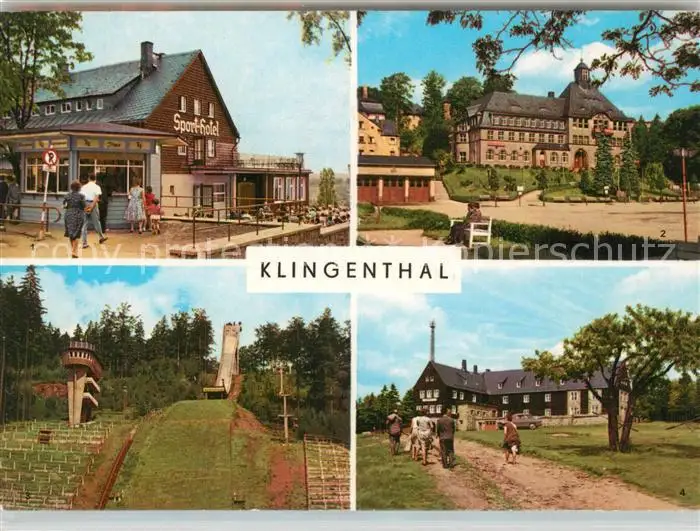 AK / Ansichtskarte Klingenthal_Vogtland HOG Sporthotel Rathaus Grosse Aschbergschanze Jugendherberge Klingenthal_Vogtland