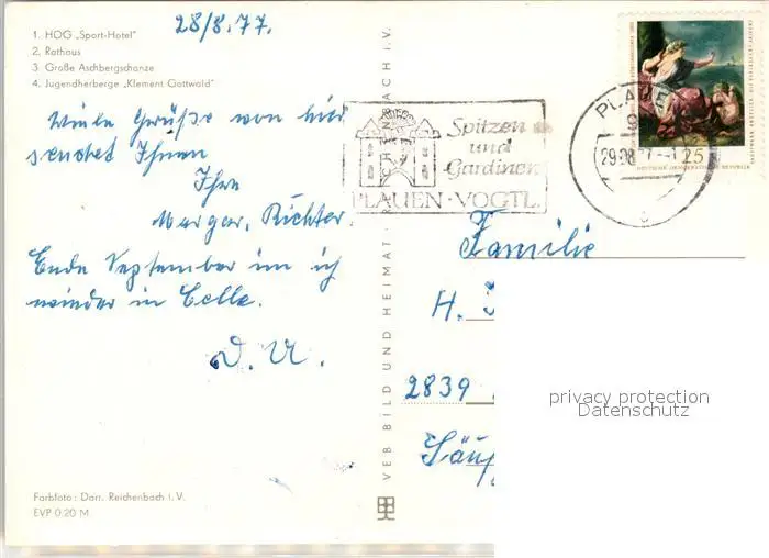 Klingenthal_Vogtland HOG Sporthotel Rathaus Grosse Aschbergschanze Jugendherberge Klingenthal_Vogtland postalisch gelaufen 1977 Erhaltung siehe scans [KathaD81] Kathoren