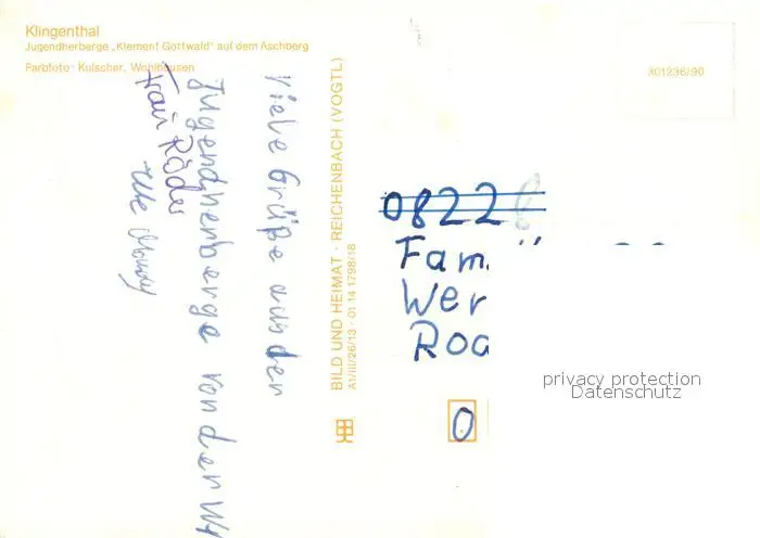 Klingenthal_Vogtland Jugendherberge Klement Gottwald Aschberg Klingenthal_Vogtland postalisch nicht gelaufen nach 1965 Erhaltung siehe scans [FriedD77] Frierer