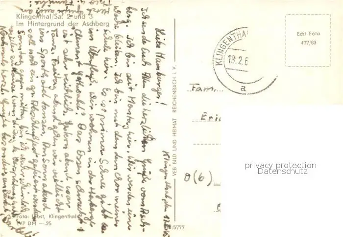 Klingenthal_Vogtland Kirche mit Aschberg Klingenthal_Vogtland postalisch gelaufen 1965 Erhaltung siehe scans [LiesaD40] LiesID40