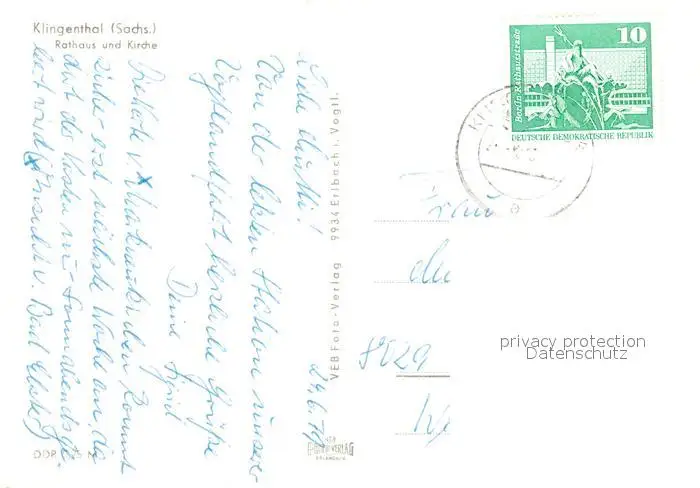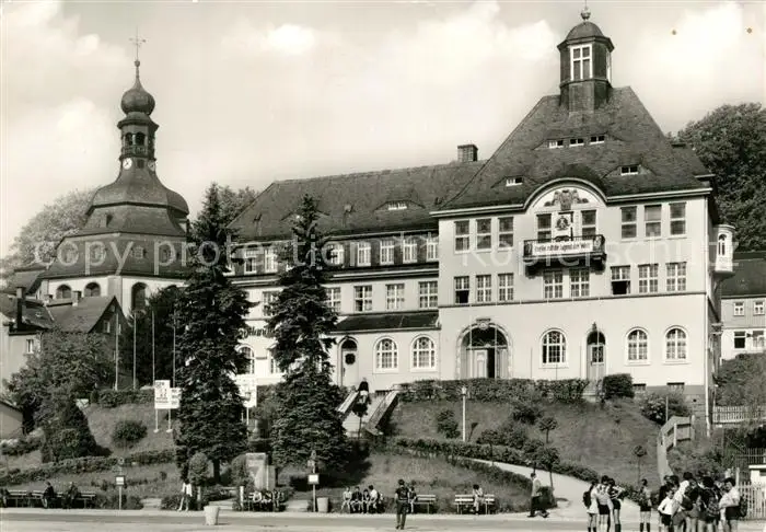 Klingenthal_Vogtland Rathaus Kirche Klingenthal_Vogtland postalisch gelaufen 1979 Erhaltung siehe scans [LiesaD40] LiesID40