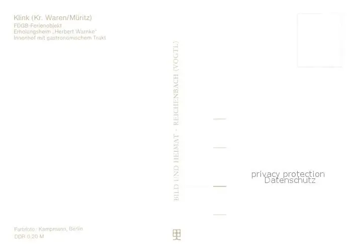 Klink_Waren FDGB Ferienobjekt Erholungsheim Herbert Warnke Innenhof Klink Waren postalisch nicht gelaufen 1979 Erhaltung siehe scans [FriedD77] Frierer
