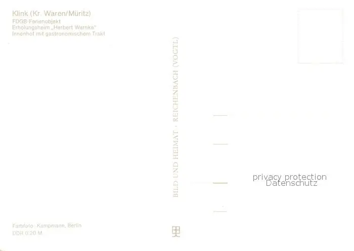 Klink_Waren FDGB Ferienobjekt Erholungsheim Herbert Warnke Innenhof Klink Waren postalisch nicht gelaufen nach 1965 Erhaltung siehe scans [FriedD77] Frierer