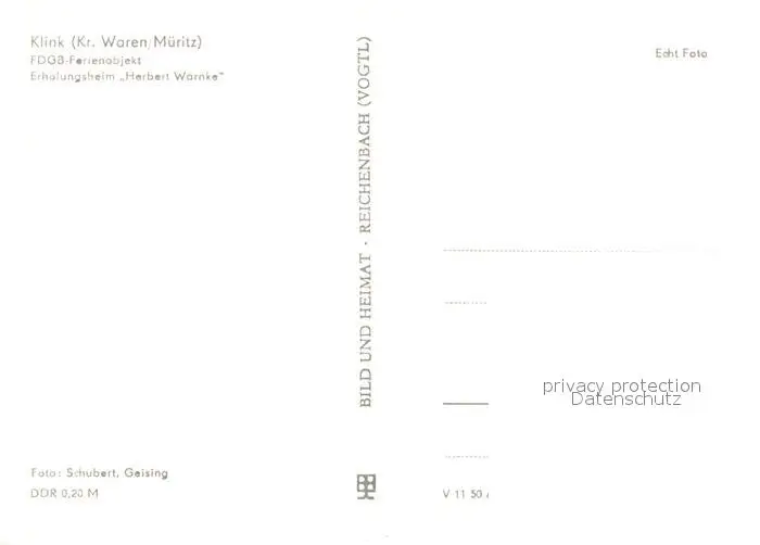 Klink_Waren FDGB Ferienobjekt Erholungsheim Herbert Warnke Klink Waren postalisch nicht gelaufen 1977 Erhaltung siehe scans [FriedD77] Frierer
