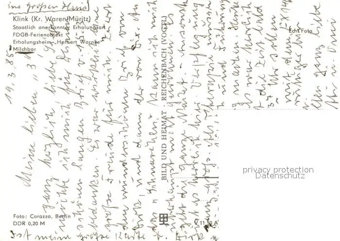 Klink_Waren FDGB Ferienobjekt Erholungsheim Herbert Warnke Milchbar Klink Waren postalisch nicht gelaufen 1985 Erhaltung siehe scans [FriedD77] Frierer