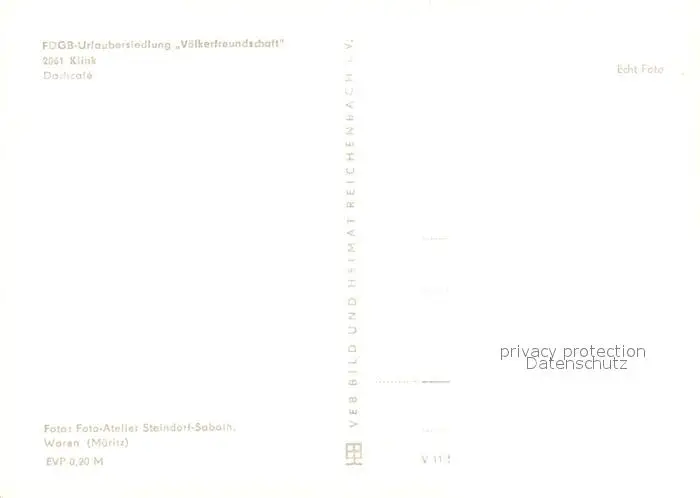 Klink_Waren FDGB Urlaubersiedlung Voelkerfreundschaft Dachcafe Klink Waren postalisch nicht gelaufen 1975 Erhaltung siehe scans [FriedD77] Frierer