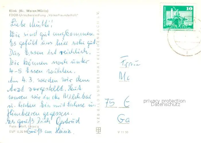 Klink_Waren FDGB Urlaubersiedlung Voelkerfreundschaft Strand Kulturgebaeude Bootspartie Klink Waren postalisch gelaufen nach 1965 Erhaltung siehe scans [FriedD77] Frierer