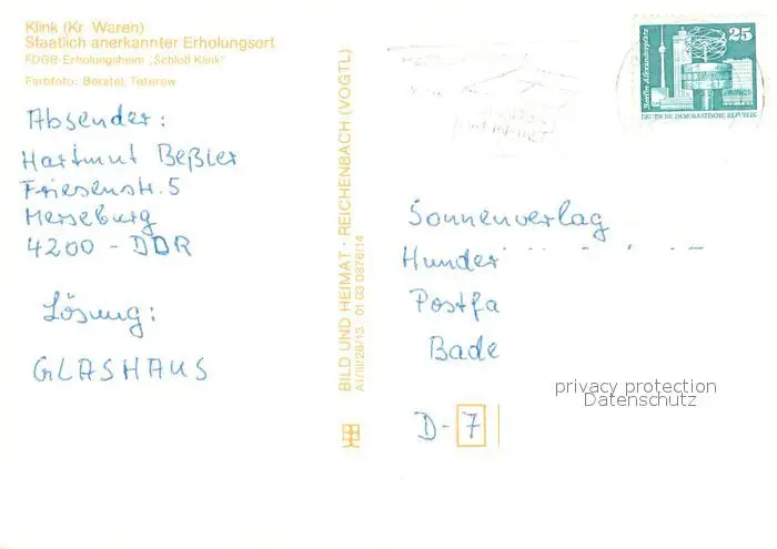 Klink_Waren Schloss Klink FDGB Erholungsheim Klink Waren postalisch gelaufen nach 1965 Erhaltung siehe scans [WerneD78] WernPID7