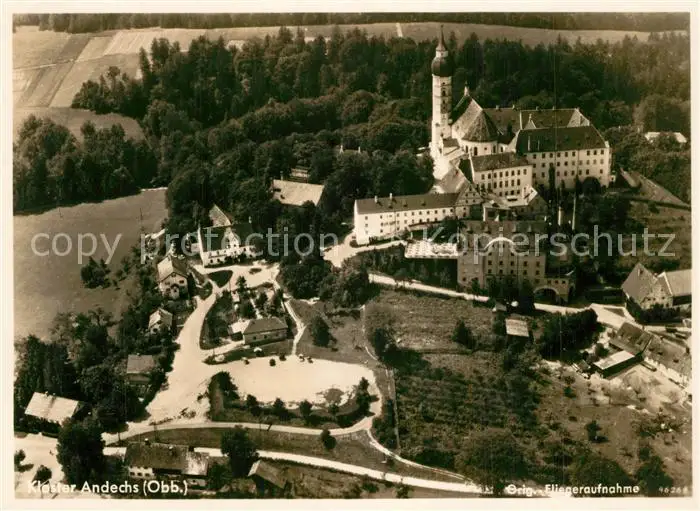 Kloster_Andechs Kategorie Alte Ansichtskarten Postkarten bx66554 Kloster_Andechs Fliegeraufnahme Kloster_Andechs postalisch nicht gelaufen nach 1965 Erhaltung siehe scans [WerneD78]