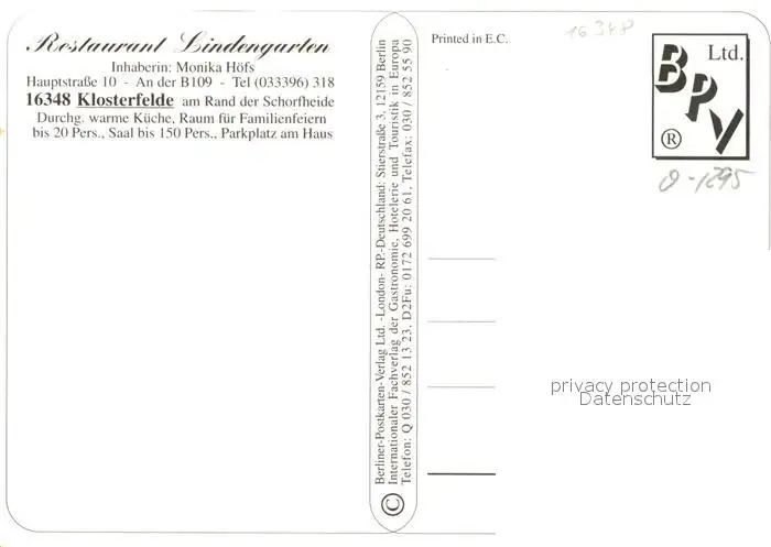 Klosterfelde Restaurant Lindengarten Gastraeume Theke Klosterfelde postalisch nicht gelaufen nach 1965 Erhaltung siehe scans [WerneD78] WernPID7