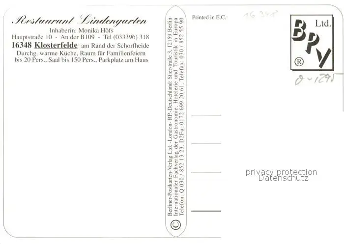 Klosterfelde Restaurant Lindengarten Gastraeume Theke Klosterfelde postalisch nicht gelaufen nach 1965 Erhaltung siehe scans [WerneD78] WernPID7