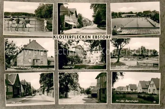 Klosterflecken_Ebstorf Kategorie Alte Ansichtskarten Postkarten bx93553 Klosterflecken_Ebstorf Am Muehlenteich Waldbad Jugendherberge Klosterhof Am Kloster Hauptstr Lueneburger Str An der Bahnhofstr postalisch nicht gelaufen Erhaltung siehe scans [WerneD78]