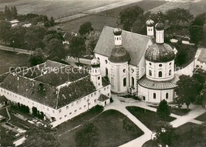 AK / Ansichtskarte Klosterlechfeld Wallfahrtskirche Maria Hilf mit Franziskanerkloster Klosterlechfeld Fliegeraufnahme Klosterlechfeld