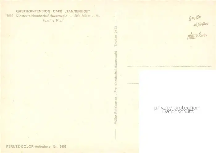 Klosterreichenbach Kategorie Alte Ansichtskarten Postkarten bx45496 Klosterreichenbach Gasthaus Pension Tannenhof Klosterreichenbach postalisch nicht gelaufen nach 1965 Erhaltung siehe scans [LiesaD40]