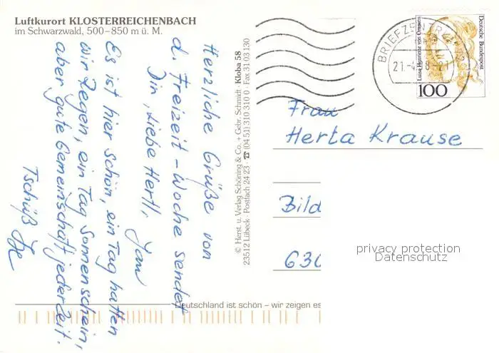 Klosterreichenbach Teilansichten Luftkurort im Schwarzwald Freibad Klosterreichenbach postalisch gelaufen 1998 Erhaltung siehe scans [FriedD77] Frierer