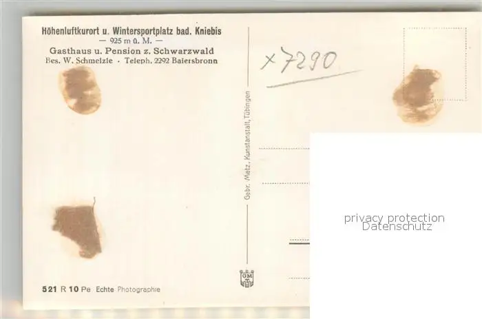 Kniebis_Freudenstadt Gasthaus Pension zum Schwarzwald Winterimpressionen Kniebis_Freudenstadt postalisch nicht gelaufen 1921-1965 Erhaltung siehe scans [FriedD77] Frierer