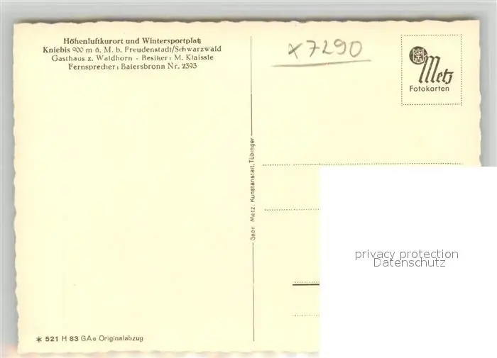 Kniebis_Freudenstadt Gasthaus zum Waldhorn Kniebis_Freudenstadt postalisch nicht gelaufen 1921-1965 Erhaltung siehe scans [KathaD81] Kathoren