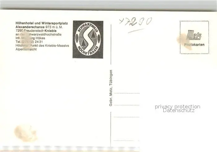 Kniebis_Freudenstadt Hotel Alexanderschanze Passhoehe Schwarzwald Winterimpressionen Kniebis_Freudenstadt postalisch nicht gelaufen 1921-1965 Erhaltung siehe scans [FriedD77] Frierer