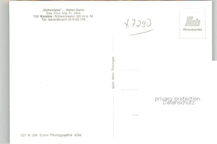 Kniebis_Freudenstadt Hotel Garnie Hohentann Schwarzwald Kniebis_Freudenstadt postalisch nicht gelaufen 1921-1965 Erhaltung siehe scans [FriedD77] Frierer