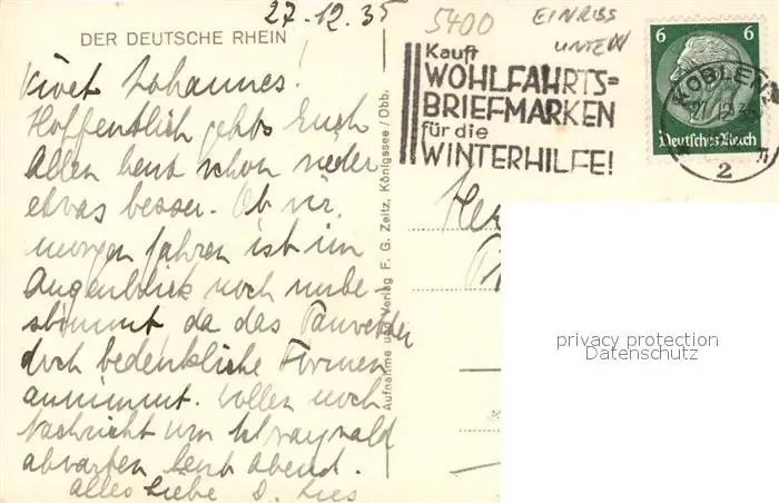 Koblenz_Rhein Alte Burg Moselbr?cke Koblenz_Rhein postalisch gelaufen 1935 Erhaltung siehe scans [PaolaD17] PaolPID1