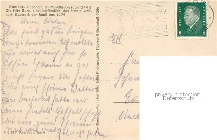 Koblenz_Rhein Alte Moselbruecke Alte Burg Koblenz_Rhein postalisch gelaufen 1921-1965 Erhaltung siehe scans [KathaD81] Kathoren